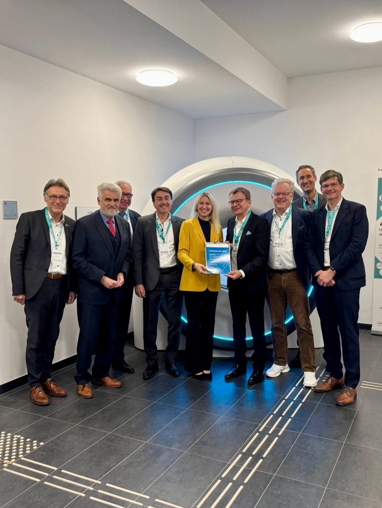 Erlangen. Bundestagsabgeordnete Dr. Silke Launert besuchte Ende Oktober im Rahmen ihrer Tätigkeit als Parlamentarische Staatssekretärin im BMFTR das Universitätsklinikum in Erlangen. Dort arbeiten Wissenschaftlerinnen und Wissenschaftler an dem Forschungsinfrastrukturprojekt „14 Tesla Magnetresonanztomographie“, an dem sich insgesamt dreizehn Forschungseinrichtungen beteiligen. Durch die Entwicklung des MRTs mit einer Magnetstärke von 14 Tesla sollen zukünftig neue biomedizinische Erkenntnisse ermöglicht werden und Einblicke in die Funktionsweisen des menschlichen Körpers verbessert werden. Während ihres Besuches traf sich Silke Launert daher mit Prof. Dr. Armin Nagel des Radiologischen Instituts, den Direktoren des Radiologischen bzw. des Neuroradiologischen Instituts des Universitätsklinikums, Prof. Michael Uder und Prof. Arnd Dörfler sowie mit Prof. Mark Ladd, dem Leiter der Abteilung der Medizinischen Physik in der Radiologie am Deutschen Krebsforschungszentrums in Heidelberg. „Ein Projekt mit enormen Potenzial – technologisch und medizinisch“, erklärte Silke Launert abschließend und bedankte sich für den Besuch.