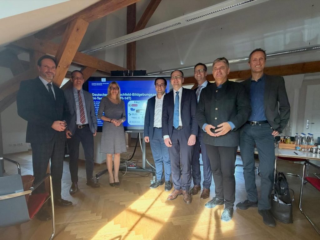 Erlangen. Bundestagsabgeordnete Dr. Silke Launert besuchte Ende Oktober im Rahmen ihrer Tätigkeit als Parlamentarische Staatssekretärin im BMFTR das Universitätsklinikum in Erlangen. Dort arbeiten Wissenschaftlerinnen und Wissenschaftler an dem Forschungsinfrastrukturprojekt „14 Tesla Magnetresonanztomographie“, an dem sich insgesamt dreizehn Forschungseinrichtungen beteiligen. Durch die Entwicklung des MRTs mit einer Magnetstärke von 14 Tesla sollen zukünftig neue biomedizinische Erkenntnisse ermöglicht werden und Einblicke in die Funktionsweisen des menschlichen Körpers verbessert werden. Während ihres Besuches traf sich Silke Launert daher mit Prof. Dr. Armin Nagel des Radiologischen Instituts, den Direktoren des Radiologischen bzw. des Neuroradiologischen Instituts des Universitätsklinikums, Prof. Michael Uder und Prof. Arnd Dörfler sowie mit Prof. Mark Ladd, dem Leiter der Abteilung der Medizinischen Physik in der Radiologie am Deutschen Krebsforschungszentrums in Heidelberg. „Ein Projekt mit enormen Potenzial – technologisch und medizinisch“, erklärte Silke Launert abschließend und bedankte sich für den Besuch.