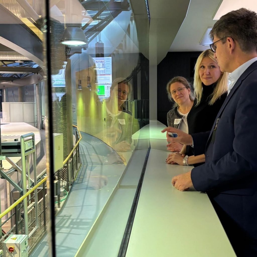 Besonders beeindruckte zeigte sich Silke Launert dabei von der Röntgenlichtquelle BESSY II – das wichtigste Werkzeug des HZB in diesem Forschungsbereich! Mit ihrer Hilfe gewinnen die Forscherinnen und Forscher Einblicke in die Strukturen und Prozesse einer Vielzahl von Untersuchungsobjekten – von Solarzellen, Batteriematerialien und katalytisch aktiven Materialien bis hin zu Viren, Bakterien und Meteoriten. Was kaum jemand weiß: Mithilfe der Röntgenlichtquelle BESSY II konnten die Forscherinnen und Forscher des HZB als erstes Forschungsteam der Welt im Jahr 2020 das Spike-Protein des Erregers der Coronapandemie SARS-CoV-2 entschlüsseln. Aber auch für die deutsche Wirtschaft hat BESSY II einen immensen Wert: Ob Solarzellen, Katalysatoren für grünen Wasserstoff, Batterien oder Quantenmaterialien – alles lässt sich mit BESSY II untersuchen und mithilfe der Messergebnisse für die weitere Entwicklung optimieren. Daher bedankte sich Silke Launert bei dem wissenschaftlichen Geschäftsführer Prof. Dr. Bernd Recht und der kaufmännischen Geschäftsführerin Saskia Vormfelde für den Austausch und die spannenden Einblicke in die Projekte des HZB.